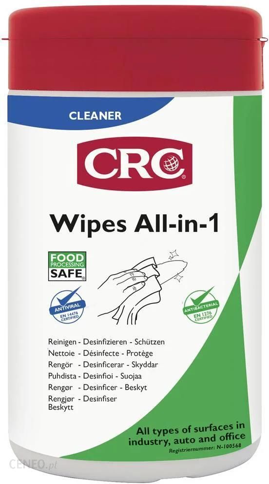 Chusteczki Chusteczki ALL-IN-1Wyposażenie: CRC Wipes all-in-one to profesjonalne chusteczki, które szybko i skutecznie czyszczą i dezynfekują powierzchnie. Usuwają olej, tłuszcz, smary, smołę, kleje i inne zabrudzeniaChusteczki CRC Wipes all-in-one są impregnowane skutecznym środkiem czyszczącym i pielęgnującym, który jest delikatny dla powierzchni, ale odporny na zanieczyszczeniaChusteczki CRC Wipes all-in-one mają doskonałe właściwości czyszczące, są szczególnie chłonne, a ponieważ dłużej pozostają wilgotne, są bardzo ekonomiczne w użyciuNadaje się do użytku w każdej branży, w tym w przetwórstwie spożywczym (certyfikat NSF)Kompatybilny z prawie wszystkimi powierzchniami – doskonała kompatybilność z większością materiałów (plastik, guma, skóra itp.) oraz ze skórą (ręce)Specjalna moc czyszczenia – opracowana do skutecznego usuwania najczęstszych zanieczyszczeńBardzo chłonna – bardzo gruba dla lepszej chłonnościNadaje się do stosowania w technologii żywności – z certyfikatem NSFŚrodek dezynfekujący: antybakteryjny i antywirusowy – zabija 99,9% bakterii i wirusów zgodnie z EN 14476, EN 1276, EN 16615, EN 13727 i EN 1500Nadaje się do dezynfekcji powierzchni i rąk – zgodnie z klasyfikacją PT1 i PT2Wilgotne na dłużej – szczególnie wilgotne i niskoparujące rozwiązanie do ekonomicznego czyszczeniaNie wysusza i nie podrażnia skóry – neutralne pH, bezzapachowy, poliheksanid (PHMB), alkohol lub chlor, testowany dermatologicznieUwaga! Opis tego produktu został przetłumaczony automatycznie. Jeśli możemy poprawić go dzięki Tobie, prosimy o kontakt.