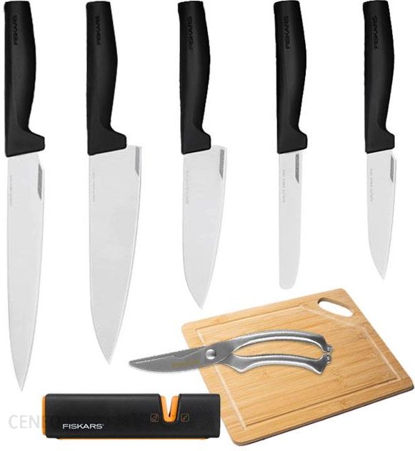 Fiskars Hard Edge Komplet 5 Noży + Ostrzałka Nożyce Deska Lita (FSHEL4)