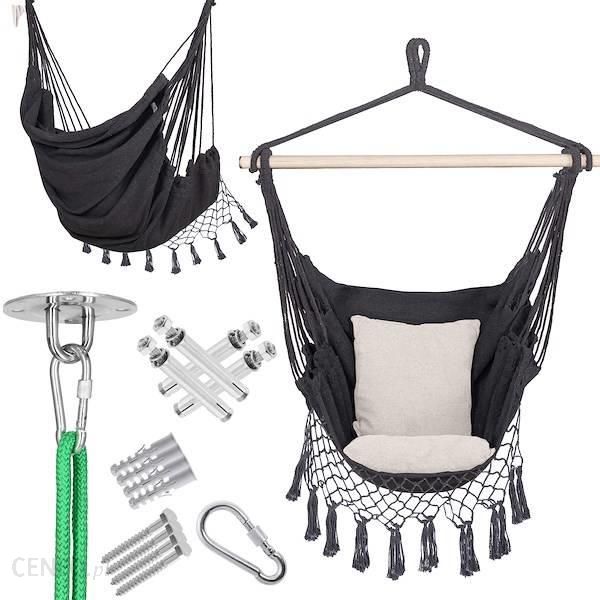 Hamak Brazylijski 130X100Cm Z Zestawem Montażowym, Fotel Wiszący Szary Z Poduszkami