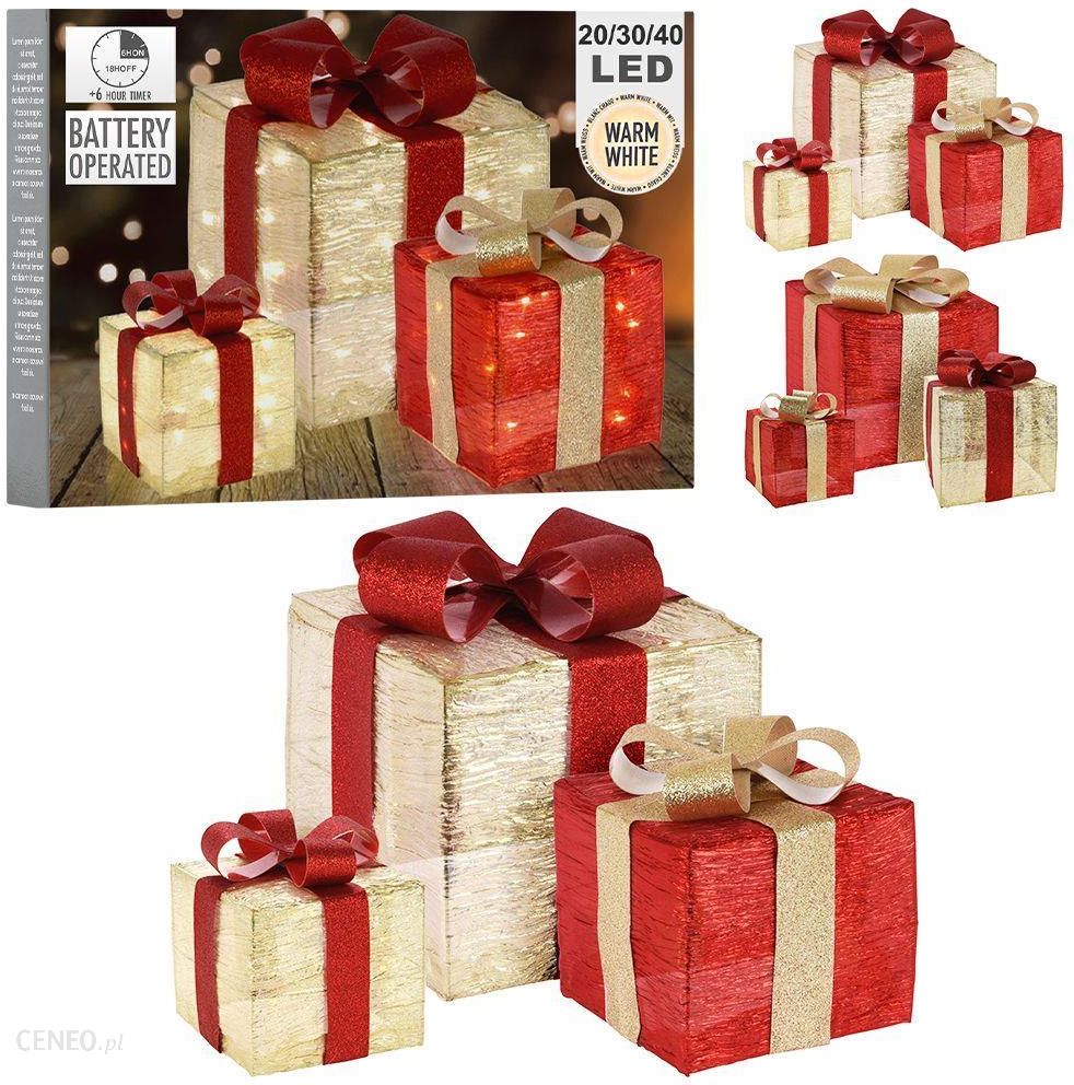 Ilde Dekoracja Ozdoba Świąteczna Świecące Prezenty Złote Czerwone Zestaw Led 3 Szt. 12849