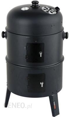 Parametry:wymiary: 46 x 41,5 x 77cm2 w 1 – grill i wędzarniaprodukt może służyć zarówno do grillowania jak i wędzenia, a także do gotowania na parze.termometr pozwala na bieżąco kontrolować temperaturę w komorze3 uchwyty – 2 boczne oraz 1 od pokrywy4 wieszaki umieszczone w spodzie pokrywy2 drzwiczki zapewniają łatwy dostęp oraz kontrolę ognia i poziomu wędzeniaotwór wentylacyjny umożliwia regulację ujścia dymu3 nóżki zapewniające stabilność oraz izolację rozgrzanego spodu od podłoża2 chromowane ruszty o średnicy 37,5cmocynkowana kratka na węgiel o średnicy 25cm2 stalowe, pokryte porcelanową emalią misy 37,5cmnaczynie no wodę pozwala absorbować tłuszcz3-częściowa budowa – podstawa z nóżkami, środek oraz pokrywagrubość paleniska i pokrywy: 0,5mm