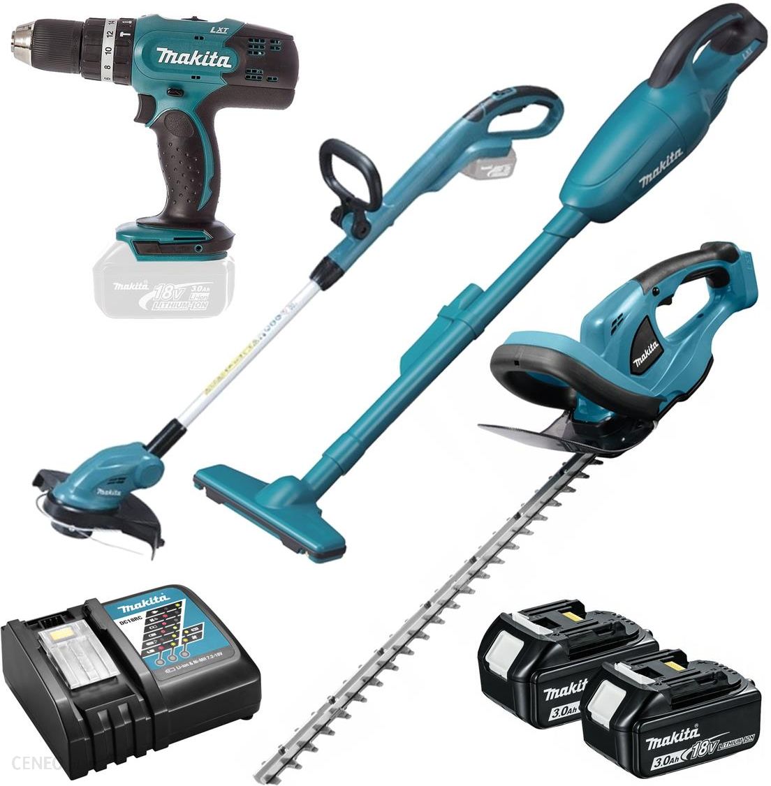 Opis:- Wiertarko-wkrętarka DHP453Z- Odkurzacz DCL180Z (+końcówki)- Podkaszarka DUR181Z- Nożyce DUH523- 2 akumulatory 3.0 Ah 18V, BL1830B- Ładowarka DC18RC