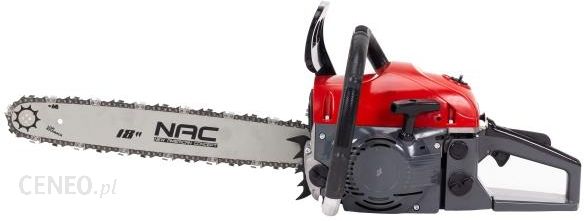 Piła spalinowa NAC o pojemności silnika 49,3 cm oraz mocy 2,85 KM. W zestawie łańcuch i prowadnica NAC o długości 45 cm.