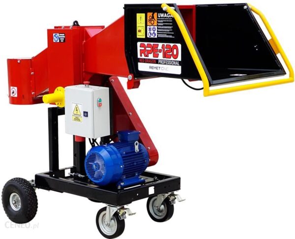 Rębak Elektryczny Model RPE-120Mobilny rębak walcowy RED DRAGON RPE-120 PROFESSIONAL wyposażony jest w niezawodny silnik elektryczny, indukcyjny o mocy 11 kW z automatycznym przełącznikiem rozruchu (gwiazda-trójkąt). Rama wykonana z profili metalowych, z możliwością adaptacji kilku wariantów zawieszenia. Rozkładany przedłużony lej wrzutowy o dużej sztywności wzmocniony profilem. Rębak wyposażony jest w wyłącznik bezpieczeństwa otaczający lej wrzutowy. Rozdrabniacz przeznaczony jest do przerobu odpadów drewnianych oraz gałęzi o średnicy do 10 cm. Przerobione drewno jest wydajnym i ekologicznym opałem, idealnie nadającym się do spalania we wszystkich typach kotłów C.O.Rębak w całości zaprojektowany i wykonany przez REMET CNC TECHNOLOGY. Konstrukcja spawana w pełni rozbieralna, zapewniająca odpowiednia sztywność i trwałość. Mechanizm tnący wykonany precyzyjnie na centrach obróbczych CNC, z jednego założenia, aby zapewnić odpowiednią jakość, dokładności oraz współosiowość co przekłada się na długą żywotność podzespołów jak i całego urządzenia. Noże mechanizmu tnącego wykonane są ze stali trudnościeralnej HARDOX, gwarantującej długą i efektywną pracę maszyny.Do rębaka można zastosować podwozie do transportu ręcznego lub terenowe oraz przenośnik taśmowy o długości 1,6m stały lub rozkładany o długości 2,3m.