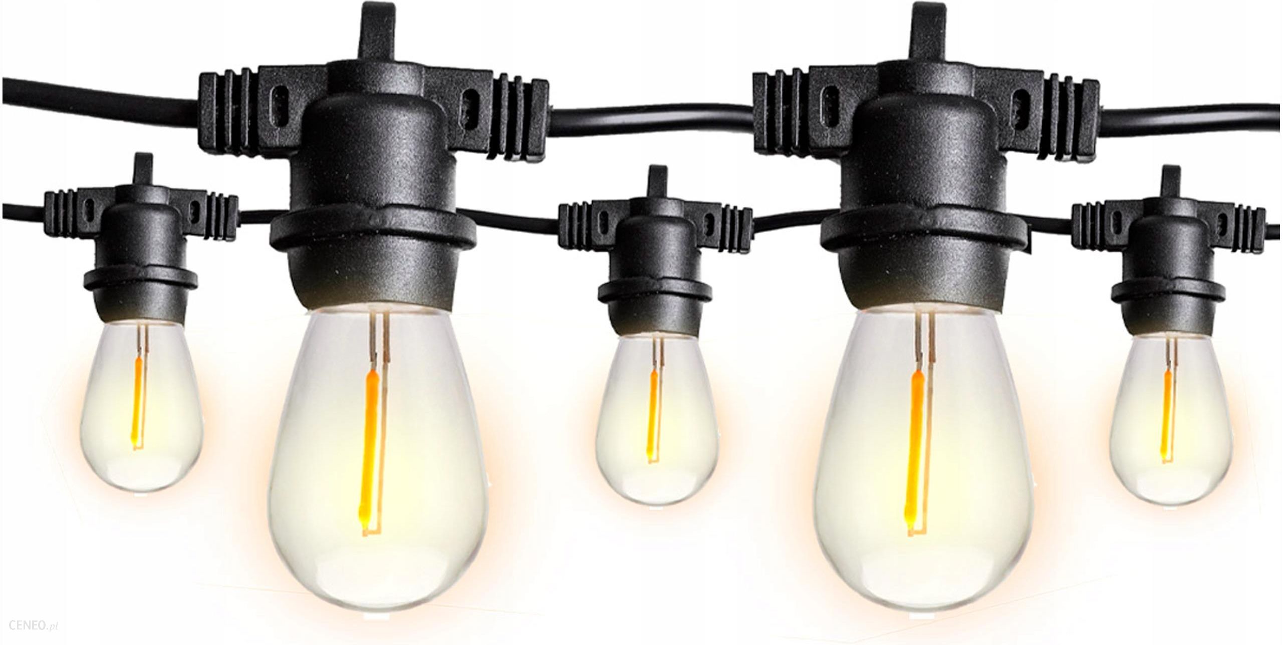 Girlanda świetlna o długości 15m i komplet 30 żarówek LED filamentZestaw zawiera:✅girlanda 15 metrowa o rozmieszczeniu gniazd co 0,5 metra – wodoodporna oraz pyłoodporna ✅30 żarówek LED filament o mocy 1W i barwie ciepłej 2700KNadaj swojej przestrzeni wyjątkowego charakteruPrzystrój ciepłymi barwami schowanymi w stylowej żarówce swój:✅Ogród/Ogródek – wodoodporna girlanda nada mu przytulny charakter, z przyjemnością Ty i Twoi goście spędzicie w nim relaksujący czas✅Taras – ciepła barwa żarówek LED spowoduje, że delikatne oświetlenie stworzy idealną atmosferę do romantycznej kolacji i chwili zadumy na świeżym powietrzu✅Balkon – łatwy i szybki montaż na barierkach✅Scena – nadaj unikalny styl spotkaniu z przyjaciółmi, baw się na niezwykłej impreziePrzyciągnij wzrok:Restauracja – unikalna konstrukcja żarówek filamentowych sprawia, że sala oraz ogródek stają się miejscem emanującym pozytywną energią i dobrymi wibracjamiSala weselna – idealny element dekoracyjny stołów, który uzupełnia kompozycję jednocześnie jej nie zaburzającGirlanda wykonana z najwyższej klasy materiałów✅przewód: HO5RN-F 2x1mm – gumowany✅wodoodporna, mrozoodporna oraz pyłoodporna: IP44Możliwość łączenia w szeregPosiada hermetyczne złącze, dzięki któremu można łączyć ze sobą girlandy. Maksymalna moc to aż 200WDane techniczne:Girlanda:długość: 15milość gniazd: 30kolor: czarnarozmieszczenie gniazd: co 0,5modległość 1 gniazda od zasilania: 1,5mmaksymalna moc: 200Wmożliwość łączenia w szereg: takprzewód: HO5RN-F 2x1mmwodoodporna: tak IP44pyłoodporna: takźródło światła: żarówka LED filament o mocy 1WŹródło światła:Model: LED filamentMoc: 1WBarwa światła: ciepła 2700KStrumień świetlny: 55 lmŻywotność: 10000 godz.Maksymalna liczba cykli: 10000Zakres temperaturowy: -20 do 40°CCRI ≥ 80kąt rozsyłu światła: 360 stopniwygląd i kształt wzorowany jest na tradycyjnych żarówkach wolframowych